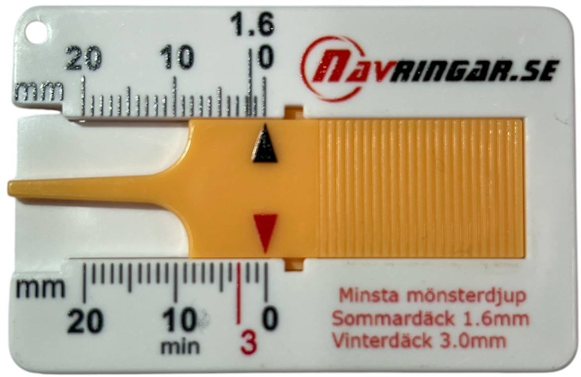 kan du snabbt mäta mönsterdjupet på både sommardäck och vinterdäck för att säkerställa att du kör med rätt djup enligt lagen.